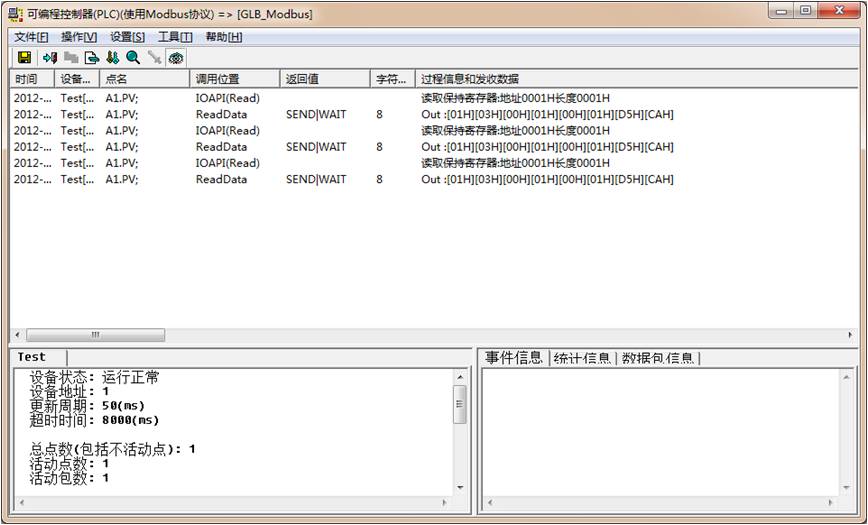 現在可以看到,驅動調度程序顯示通訊信息;如果沒有顯示,重啟工程或點擊菜單,操作->重置所有設備。