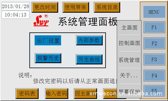 2.1人機界面主要有:監控界面、系統控制、設定使用時間、系統管理、故障處理、報警歷史與歷史曲線、參數設定、底閥系統控制、以及幫助等畫面實現人機手動自動切換的智能使用。