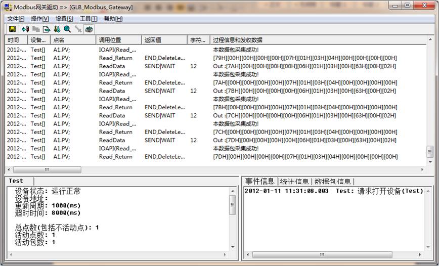 現(xiàn)在可以看到,驅(qū)動調(diào)度程序顯示通訊信息;如果沒有顯示,重啟工程或點擊菜單,操作->重置所有設(shè)備。