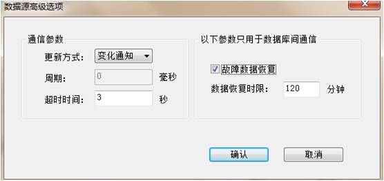 這種方案制作過(guò)程相對(duì)于前兩種要復(fù)雜一些,首先要在服務(wù)器端建立一個(gè)數(shù)據(jù)源指向客戶端,并在服務(wù)器端建立相應(yīng)的點(diǎn)關(guān)聯(lián)到客戶端的點(diǎn)上。其次,在服務(wù)器端數(shù)據(jù)庫(kù)全局腳本中編寫(xiě)一段存儲(chǔ)這些點(diǎn)PV值的歷史數(shù)據(jù)的腳本,通過(guò)一個(gè)標(biāo)志位觸發(fā)存儲(chǔ)動(dòng)作。客戶端在保存歷史數(shù)據(jù)時(shí)要把相應(yīng)點(diǎn)的PV值也做修改,這樣服務(wù)器上做了相應(yīng)關(guān)聯(lián)的點(diǎn)的PV值也會(huì)跟著做改變。在通過(guò)客戶端觸發(fā)服務(wù)器端的保存標(biāo)志位,服務(wù)器端就會(huì)自行的將這部分?jǐn)?shù)據(jù)存儲(chǔ)下來(lái),在運(yùn)行的狀態(tài)下通過(guò)報(bào)表調(diào)用GetHisDataEx()把歷史數(shù)據(jù)調(diào)取出來(lái)即可。還可以在數(shù)據(jù)源高級(jí)選項(xiàng)中把數(shù)據(jù)故障恢復(fù)勾選上,如下圖所示。即使因通訊中斷,客戶端無(wú)法觸發(fā)服務(wù)器端的保存標(biāo)志而導(dǎo)致兩端數(shù)據(jù)不同步,在通訊恢復(fù)時(shí),客戶端也會(huì)自動(dòng)的把這部分?jǐn)?shù)據(jù)長(zhǎng)傳到服務(wù)器中,這樣就更加全面的保證了兩端數(shù)據(jù)的同步性。