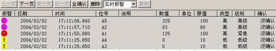 注意數據源中選擇的遠程數據源Remote,報警范圍中選擇的是區域0。這樣該報警顯示的將是遠程數據源Remote的區域0的報警。運行結果如下:
