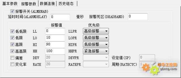 第三,在點組態界面建立點并設置報警條件。如下圖所示: