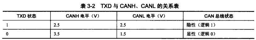 圖3-2 的CAN收發器82C250的發送數據輸入端TXD與光電耦合器6N137的輸出端OUT相連,注意,TXD必須同時接上拉電阻R3。一方面,R3保證6N137中的光敏三級管導通時輸出低電平,截止時輸出高電平。另一方面,這也是CAN總線的要求。具體而言,82C250的TXD端的狀態決定著高,低電平CAN電壓輸入/輸出端CANH,CANL的狀態。CAN總線規定,總線在空閑期間應呈隱形。即CAN網絡中節點的默認狀態是隱性的,這要求82C250的TXD端的默認狀態為邏輯1(高電平)。為此,必須通過R3確保在不發送數據或出現異常情況時,TXD端的狀態為邏輯1(高電平)。