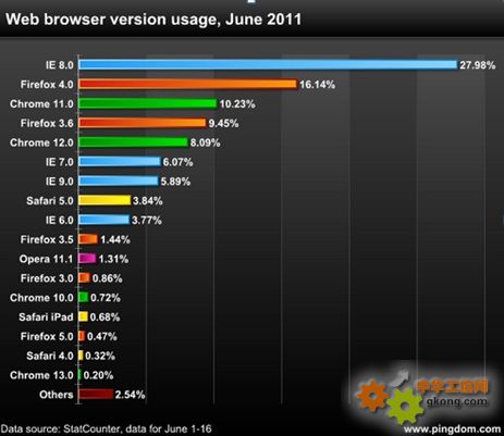 國外著名數據調研機構,StatCounter對現在占有市場份額0.2% 以及以上的瀏覽器做了統計。這里包括對超過150億的頁面瀏覽量的統計分析,所以統計結果應該是能夠代表整體情況的了。