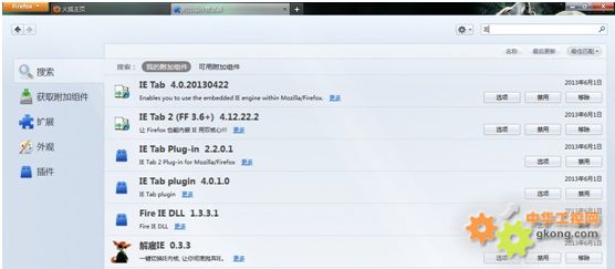 點擊左側導航中的"插件",在右上角輸入IE,檢索出相關插件,結果如下: