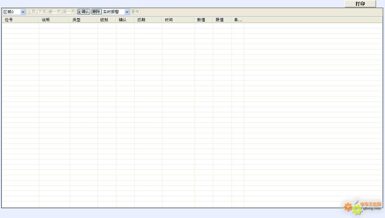 提供關(guān)鍵參數(shù)的報警功能,實現(xiàn)實時報警的即時顯示和歷史報警的回溯查詢。可以設(shè)置報警提示的優(yōu)先級,提供【報警確認】功能,方便事件認定。報警信息同樣支持打印功能。