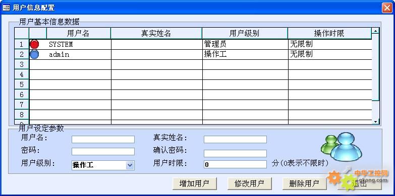 系統(tǒng)提供周密的安全管理功能。只有系統(tǒng)管理員才可以打開【用戶信息配置】界面。此界面提供如下功能: