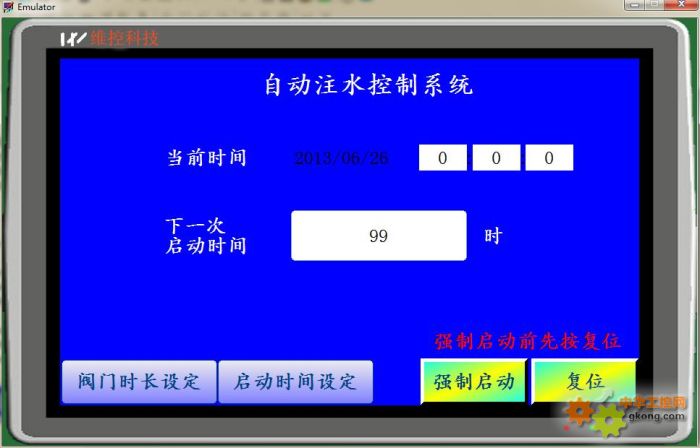 閥門啟動時間設定頁可以設置閥門開啟的時間,到了時間,注水系統就自動運行。