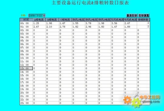 紫金橋軟件還實(shí)現(xiàn)各個(gè)電機(jī)電流日報(bào)表、多個(gè)測點(diǎn)溫度日報(bào)表的查詢和打印。這一功能是功過紫金橋軟件自帶的自由報(bào)表組件實(shí)現(xiàn)的,自由報(bào)表通過對生產(chǎn)數(shù)據(jù)的加工,可以形成各類報(bào)表,包括實(shí)時(shí)數(shù)據(jù)報(bào)表、班報(bào)、日報(bào)、月報(bào)、年報(bào)等數(shù)據(jù)。也可以定制各種歷史報(bào)表,如通過查詢時(shí)間等查詢生成各類報(bào)表。