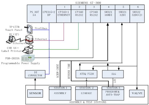 - 測試臺上其它傳感器信號通過支持Profibus-DP通信協(xié)議的DI Connector連接至PLC;