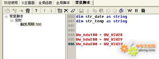 雙擊【觸發周期500】,在腳本編輯中完成如下內容