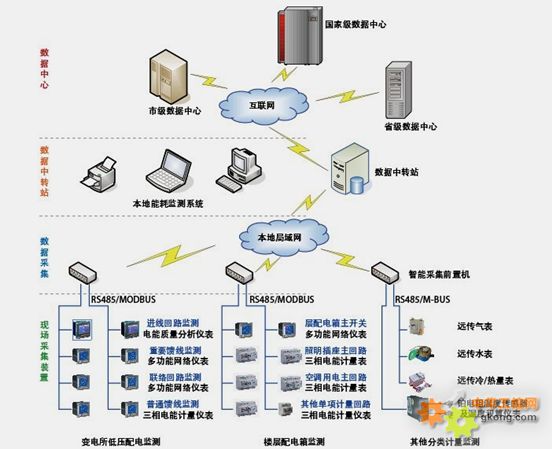 通過(guò)在能耗監(jiān)測(cè)儀表箱(柜)中安裝的能耗智能數(shù)據(jù)網(wǎng)關(guān),實(shí)時(shí)采集能耗計(jì)量?jī)x表的數(shù)據(jù),并且通過(guò)TCP/IP網(wǎng)絡(luò)傳輸?shù)侥芎谋O(jiān)控中心。無(wú)需遠(yuǎn)距離布線,施工簡(jiǎn)單可靠。智能數(shù)據(jù)網(wǎng)關(guān)提供多種接入方式,支持包括RS-485/RS-232總線、光纖、工業(yè)以太網(wǎng)、433M無(wú)線、GSM/GPRS/CDMA網(wǎng)絡(luò)傳輸?shù)榷喾N方式。