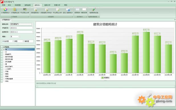系統(tǒng)自動將建筑能耗進(jìn)行分類分析,即:耗電量、耗水量、耗氣量(天然氣量或者煤氣量)、集中供熱耗熱量、集中供冷耗冷量、其他能源應(yīng)用量(如集中熱水供應(yīng)量、煤、油、可再生能源等)