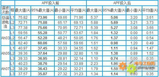 下面以配電室配電變壓器母線處ANAPF有源濾波器投入運行前、后配電系統電能質量測試情況的對比分析為例來具體描述。