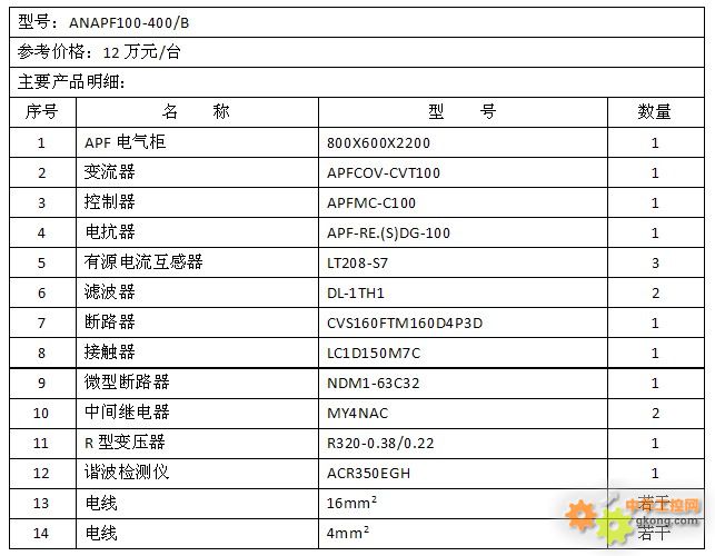 4.4 ANAPF有源濾波器報價及主要元件清單