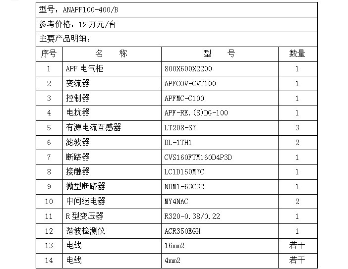 6、 ANAPF低壓有源濾波器報價及主要元件清單