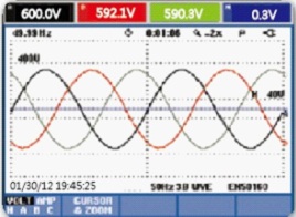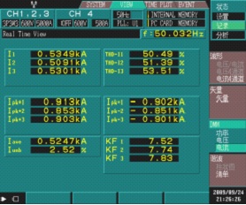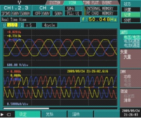 圖2:電壓及電流波形圖 圖3:電壓電流及功率數(shù)據(jù)