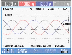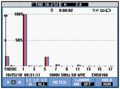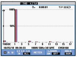 以下是ANAPF有源濾波器投入前后的現場對比數據: 1)三相電壓波形前后對比,見圖2、圖3。 2)三相電壓諧波含量前后對比,見圖4、圖5。 3)三相電流波形前后對比,見圖6、圖7。 4)三相電流諧波含量前后對比,見圖8、圖9