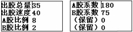 系統工作需要設置的參數為:出膠總量、A膠比例、B膠比例、出膠速度、A膠系數、B膠系數等。預先繪制128×64象素圖片: