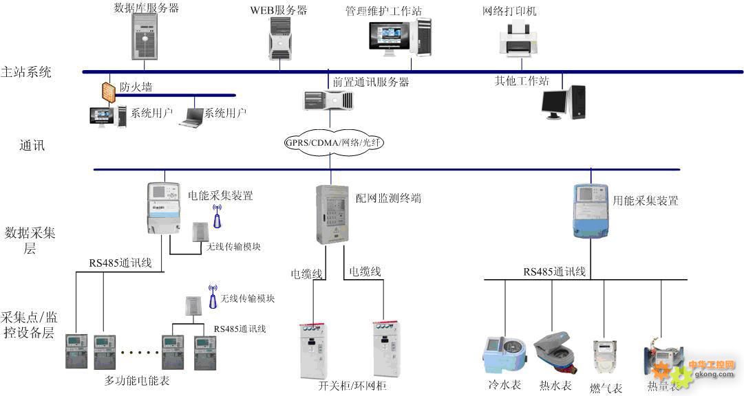 工業能耗在線監測系統是一個集成Intranet/Internet網絡技術、GPRS無線傳輸技術、Web Service軟件技術、數據庫技術等于一體的大型數據綜合管理系統。系統為管理者、各級能耗內部用戶、瀏覽者提供了一個訪問的網絡通道,搭建了一個合理、高效的信息傳輸平臺和管理平臺。工業能耗在線監測系統的開發應用為政府管理部門、企業生產管理、計量管理、節能管理提高到一個新的高度,是我們對節能減排、節能降耗實現的一種行之有效的解決方案。