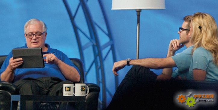 圖2:2012年NIWeek上,LabVIEW之父Jeff Kodosky在平板電腦上演示未來基于觸控的LabVIEW編程方式。