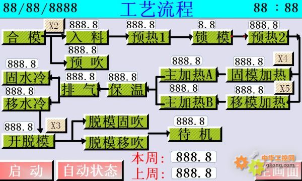 1、該機(jī)采用PLC可編程控制器與人機(jī)界面觸摸屏共同來實(shí)現(xiàn)成型機(jī)的自動(dòng)與手動(dòng)控制。文章主要介紹半自動(dòng)泡塑成型機(jī)在維控HMI上的應(yīng)用,其主要流程包括:合模,進(jìn)料,鎖模,加熱成型,冷卻,開模和脫模等步驟。實(shí)現(xiàn)自動(dòng)與手動(dòng)控制結(jié)合。