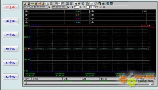 所有進行歷史保存的數據都可以通過曲線的形式來表現出來,也就是圖形化的歷史數據分析界面。另外系統還包含了登陸管理和退出功能,即點擊登陸可返回登陸界面,點擊退出則退出運行程序。