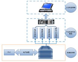 整個(gè)監(jiān)測系統(tǒng)采用的硬件平臺(tái)是基于NI CompactRIO[2]系列硬件實(shí)現(xiàn)的。該系列產(chǎn)品是一種小巧堅(jiān)固的工業(yè)化測試和采集系統(tǒng)。系統(tǒng)最大的特點(diǎn)是包含可重新配置的I/O及FPGA芯片,可以通過對FPGA芯片的編程實(shí)現(xiàn)基于硬件的可靠系統(tǒng),CompactRIO還包含支持熱插拔的模塊,根據(jù)不同的測試需求,可以選擇不同的模塊,如數(shù)字輸入、模擬輸入、輸出、動(dòng)態(tài)信號(hào)采集、溫度傳感器信號(hào)采集等,而且由于在該平臺(tái)上運(yùn)行的是實(shí)時(shí)操作系統(tǒng),因此整個(gè)監(jiān)控系統(tǒng)核心部分——下位機(jī)的可靠性和穩(wěn)定性都有了極大的提高。
