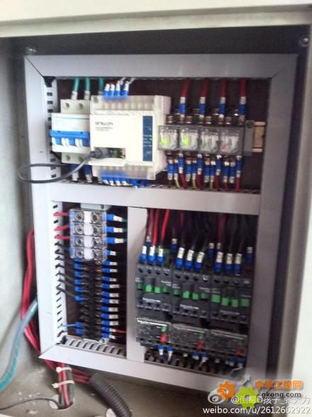 圖1所示為枕式包裝機的控制箱局部,使用了維控20點PLC:LX1S20MT與7寸觸摸屏700L。