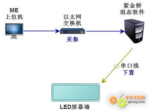 天然氣公司六大隊南壓淺冷站,主控室修建了一面LED屏幕墻,顯示淺冷站主要工藝流程,同時顯示10個關(guān)鍵參數(shù),包括6個溫度和4個液位。這10個數(shù)據(jù)需要從主控室現(xiàn)場的上位機中采集,并下置到LED大屏幕上。