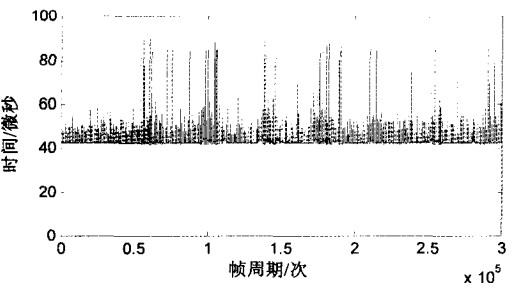 另外,在相同條件下屏蔽針對操作系統的優化程序,發現一次數據采集時間最大可達4.5毫秒,超過了系統幀周期要求,從而驗證了通用操作系統實時性優化設計的有效性。