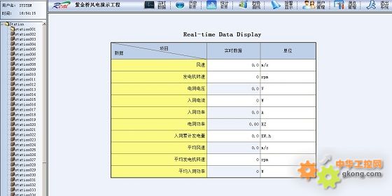 以報表、圖形動畫等多種形式顯示當前的實時數據,并可以通過右側導航切換不同的監控設備。數據實時刷新,能快速的獲得風機的環境風速、電網電壓、發電機轉速、入網電流、入網功率、入網累計發電量、短路剎車狀態、液壓剎車狀態、變流器狀態等參數。