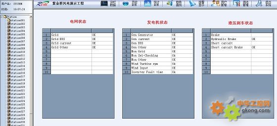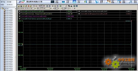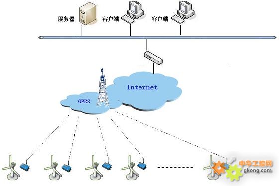 采用遠程無線監控的方式,利用覆蓋全國的移動公司GPRS網絡平臺,將風機的各個參數,包括環境風速、電網電壓、發電機轉速、入網電流、入網功率、入網累計發電量、短路剎車狀態、液壓剎車狀態、變流器狀態等,通過DTU將數據端發往調度中心的數據中心服務器上的數據庫,并通過紫金橋監控軟件對數據進行實現監控、報警、報表統計、曲線分析、數據總貌等多項功能。服務器支持B/S遠程訪問。