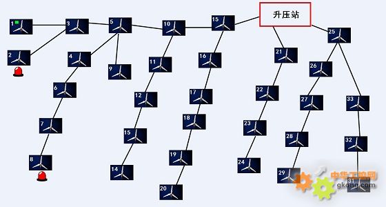 以拓撲圖的形式展現風機間的組織關系,支持鼠標消息,當鼠標進入每個風機單元時,會自動顯示當前風機的實時參數值。當風機有報警時,對應的報警燈會閃爍。