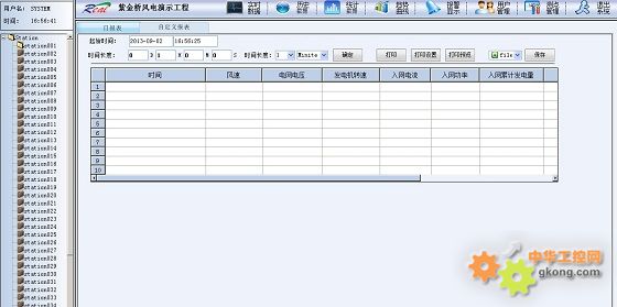 利用歷史報表,能夠以多種方式顯示環境風速、電網電壓、發電機轉速、入網功率、入網累計發電量等參數的歷史記錄,方便進行對比、歸檔、分析、統計數據處理功能。
