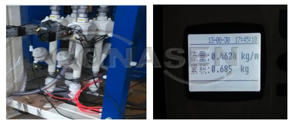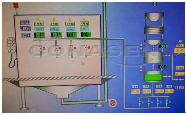 典型應用如下: ● 監(jiān)測運輸線路上一部分或者整個線路的堵塞狀況 ● 監(jiān)測儲罐內(nèi)上游介質(zhì)的架橋狀況 ● 監(jiān)測由于上游設備故障所導致的介質(zhì)流動不適當或不充分 ● 監(jiān)測介質(zhì)的流動狀態(tài) ● 控制設備的啟/停,控制下游工藝 3.2 噴槍流量測量及控制 百通公司新研制的噴丸強化處理機有四臺噴槍,使用陶瓷丸(顆粒直徑75微米)。在正常使用時,每臺噴槍噴出的流量要求控制在420g/min-480g/min之間,要求測量精度在5%以內(nèi)。正常情況下,要達到此流量,管道上的閥門開度僅僅1.1mm,流態(tài)非常不穩(wěn),極難測量。我單位使用MONITOR SFI微波固體流量計對噴槍流量進行測量,并將測量信號傳送至PLC進行閥門控制。 經(jīng)過調(diào)試, SFI可以達到±3%的高精度,并且數(shù)據(jù)值非常穩(wěn)定,足以滿足客戶的高精度需求。 MONITOR SFI微波固體流量計SFI憑借先進的測量技術,高級的數(shù)據(jù)分析功能可以準確高效的探測固體粉末流量。可通過高精度的探測解決噴丸行業(yè)流量控制不準確、不穩(wěn)定的問題,極大地減少用戶人工操作步驟,并可實現(xiàn)用戶流量精確控制的用途。