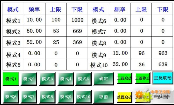 配方畫面提供了十組配方供客戶使用,根據(jù)需求選擇相應(yīng)的模式后點(diǎn)擊確定即可將配方數(shù)據(jù)下載到目標(biāo)參數(shù)中。 設(shè)備運(yùn)行過(guò)程中,若進(jìn)行模式的修改,設(shè)備將先回原點(diǎn)之后進(jìn)行修改模式后的動(dòng)作。