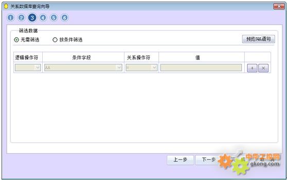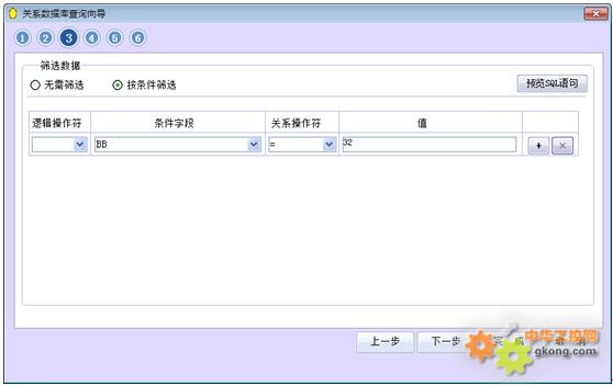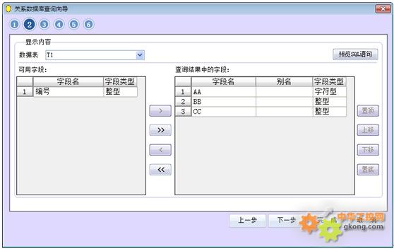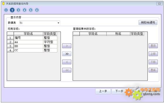 下圖是關系數據庫查詢向導的運行界面: