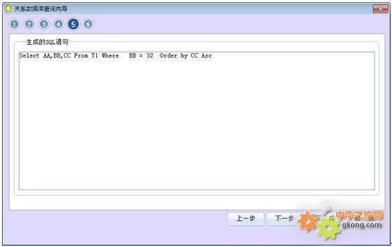 這里顯示的SQL語句,是按向導第二、三步選擇后所生成的SQL語句,用戶可以在這里進行修改。