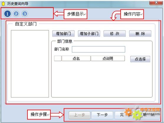 操作步驟:主要包括上一步、下一步、完成和取消等操作。