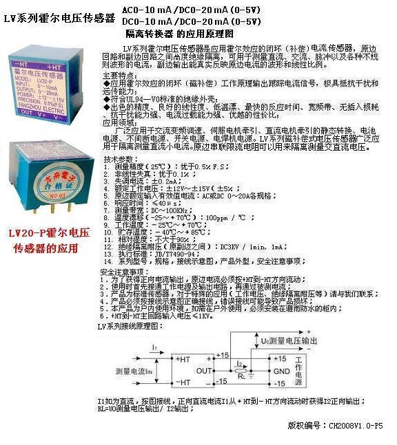 LV系列霍爾電壓傳感器是應用霍爾效應的閉環(補償)電壓傳感器,原邊回路和副邊回路之間高度絕緣隔離,可用于測量直流、交流、脈沖以及各種不規則波形的電流,副邊輸出能真實反映原邊電流的波形和線性比例。