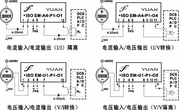 電鍍電源信號(hào)控制專用直流(電壓/電流)信號(hào)隔離轉(zhuǎn)換器是一種混合集成電路。產(chǎn)品主要用于電鍍電源4-20mA信號(hào)輸入輸出控制,內(nèi)部通過PLC的DA模塊輸出4-20mA(0-10V)的信號(hào)控制整流器的可調(diào)輸出,工作電壓、電流和各種運(yùn)行參數(shù)的監(jiān)測(cè)及外部增加4-20mA(0-20mA)/0-5V標(biāo)準(zhǔn)信號(hào)接口等。該IC為標(biāo)準(zhǔn)Sip12 Pin符合UL-94的阻燃標(biāo)準(zhǔn)封裝,占用PCB板面積少,裝入儀器內(nèi)部可以并聯(lián)安裝實(shí)現(xiàn)多路信號(hào)的監(jiān)測(cè)、隔離和轉(zhuǎn)換。IC在同一芯片上集成了一個(gè)多隔離的DC/DC變換電源和一組模擬信號(hào)隔離放大器,輸入及輸出側(cè)寬爬電距離及內(nèi)部隔離措施使該芯片可達(dá)到3000VDC絕緣電壓。Sunyuan ISO EM系列產(chǎn)品使用非常方便,免零點(diǎn)和增益調(diào)節(jié),無需外接調(diào)節(jié)電位器等任何元件,即可實(shí)現(xiàn)工業(yè)現(xiàn)場(chǎng)信號(hào)的隔離轉(zhuǎn)換功能。