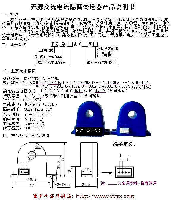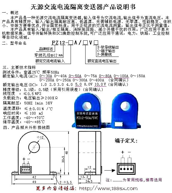 無源交流電流變送器產品說明書