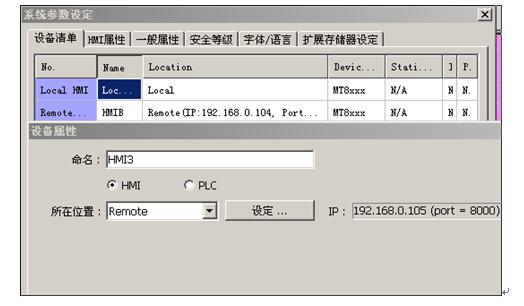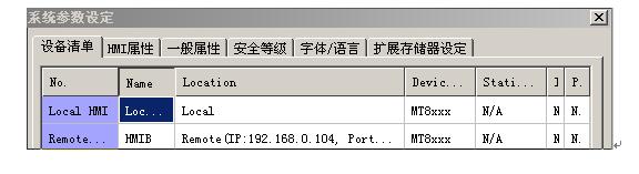 步驟二 使用EB8000,并在 [系統參數設定]里的[設備清單],增加HMI B的IP與使用的port號碼。(下面畫面是HMI A所使用MTP檔案的設定內容。)