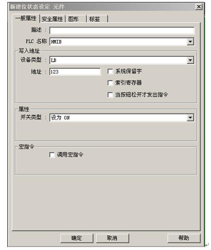 步驟三 在set bit組件的設定頁的[PLC名稱]中,選擇“HMI B”,此時HMI A即可操作HMI B的LB地址之內容。