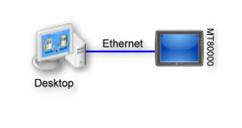 以太網絡連接的方式有兩種;可以使用RJ45平行網絡線(straight through cable),搭配集線器(hub)使用;另一種是使用RJ45跳接網絡線(crossover cable),不需使用集線器,但只限使用在一對一聯機的情況下(HMI對HMI,或PC對HMI)。下面說明各項聯機方式的設定與操作。