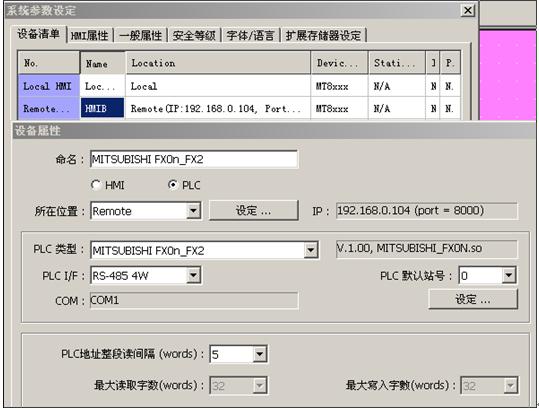 步驟二 使用EB8000,并在[系統參數設定]里的[設備清單],增加一臺PLC的定義,并正確設定通訊參數。