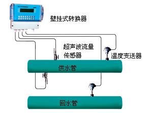 JC100R 超聲波熱量計是一種適用于測量在熱交換環路中,載熱體所吸收或轉換熱能的儀表,熱量計既能測量供熱系統的供熱量又能測量供冷系統的吸熱量 ( 冷量計 ) 。按載熱介質的不同熱量計分為熱水 ( 液體 ) 熱量計、蒸汽熱量計、過熱蒸汽熱量計和飽和蒸汽熱量計。根據熱力學原理,熱量等于流體質量流量與熱交換系統的入口和出口溫度差以及介質定壓比熱的乘積。 JC-100R 系列超聲波熱量計是利用超聲波流量傳感器和溫度傳感器測量供水流量及供、回水溫度差從而由熱量轉換器 ( 二次表 ) 測量及顯示水流經熱交換系統所釋放或吸收的熱能的儀表;緮祵W公式: |