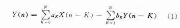 數字濾波點是將一組輸入數字序列進行一定的運算而轉換成另一組輸出數字序列,設數字濾波點的輸入為X(n),輸出為Y(n),則輸入序列和輸出序列之間的關系可用差分方程式表示為: