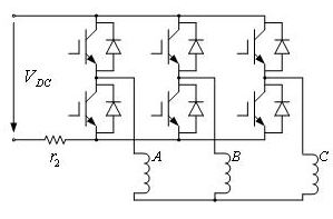 對三相無刷直流電機(jī),電流傳感器則放在直流側(cè)的負(fù)端,如圖3所示。看上去流過電阻 的電流是三相電流之和,但無刷直流電機(jī)的繞組工作在120° 通電方式,即每個瞬間只有兩相繞組通電, 上的電流就是相電流。對永磁同步電機(jī)和異步電機(jī)的控制特別是磁場定向控制,三相繞組同時通電,采用圖3的傳感器位置,根據(jù)程序中的通電狀態(tài)和測得的電流,可計(jì)算出每相電流。但用PWM開關(guān)算法,有時導(dǎo)通寬度較窄,使測量和計(jì)算變得復(fù)雜,影響實(shí)時性,故通常采用圖4的傳感器放置方法。Y型連接需要兩個傳感器才能獲得每相相電流。由于繞組和控制部分的電路需要隔離,圖中的傳感器 和 只能采用有隔離功能的電流傳感器。